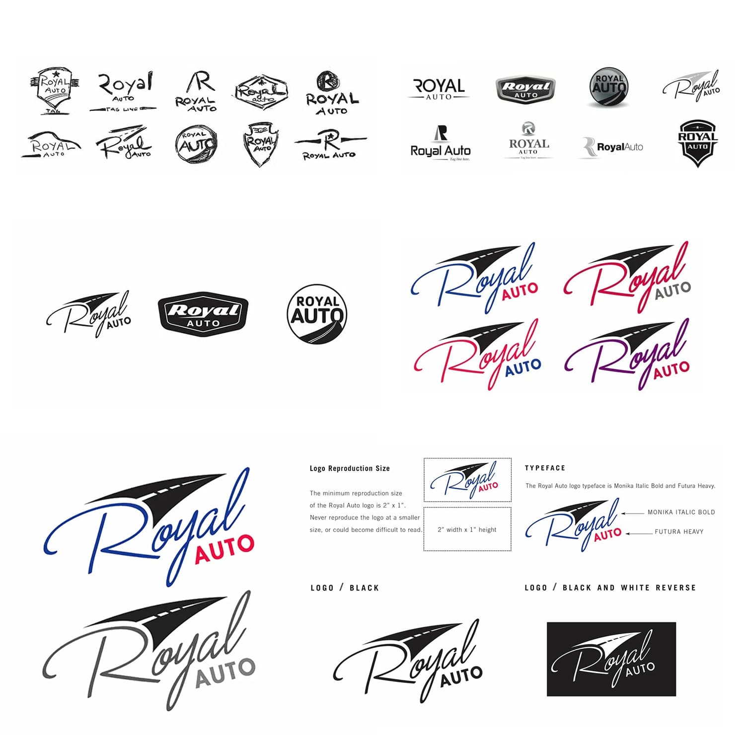 The logo development process began with a series of handcrafted sketches that captured various visual elements representing Royal Auto’s commitment to quality, innovation, and customer satisfaction. These initial sketches were then refined and translated into digital versions, allowing for a deeper exploration of the design possibilities. As the concept evolved, font treatments were meticulously curated to convey a sense of modernity and sophistication, aligning seamlessly with Royal Auto’s image.